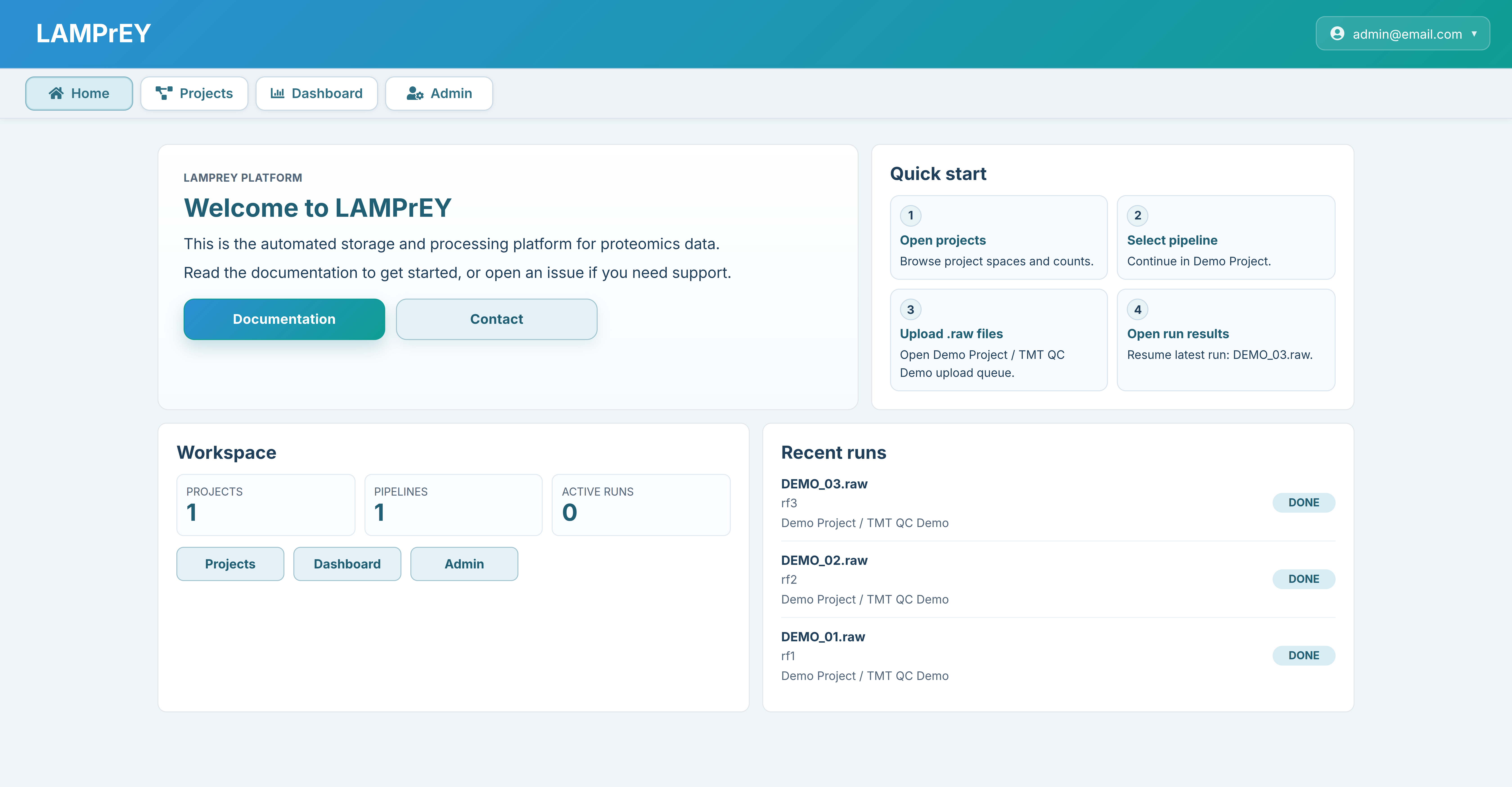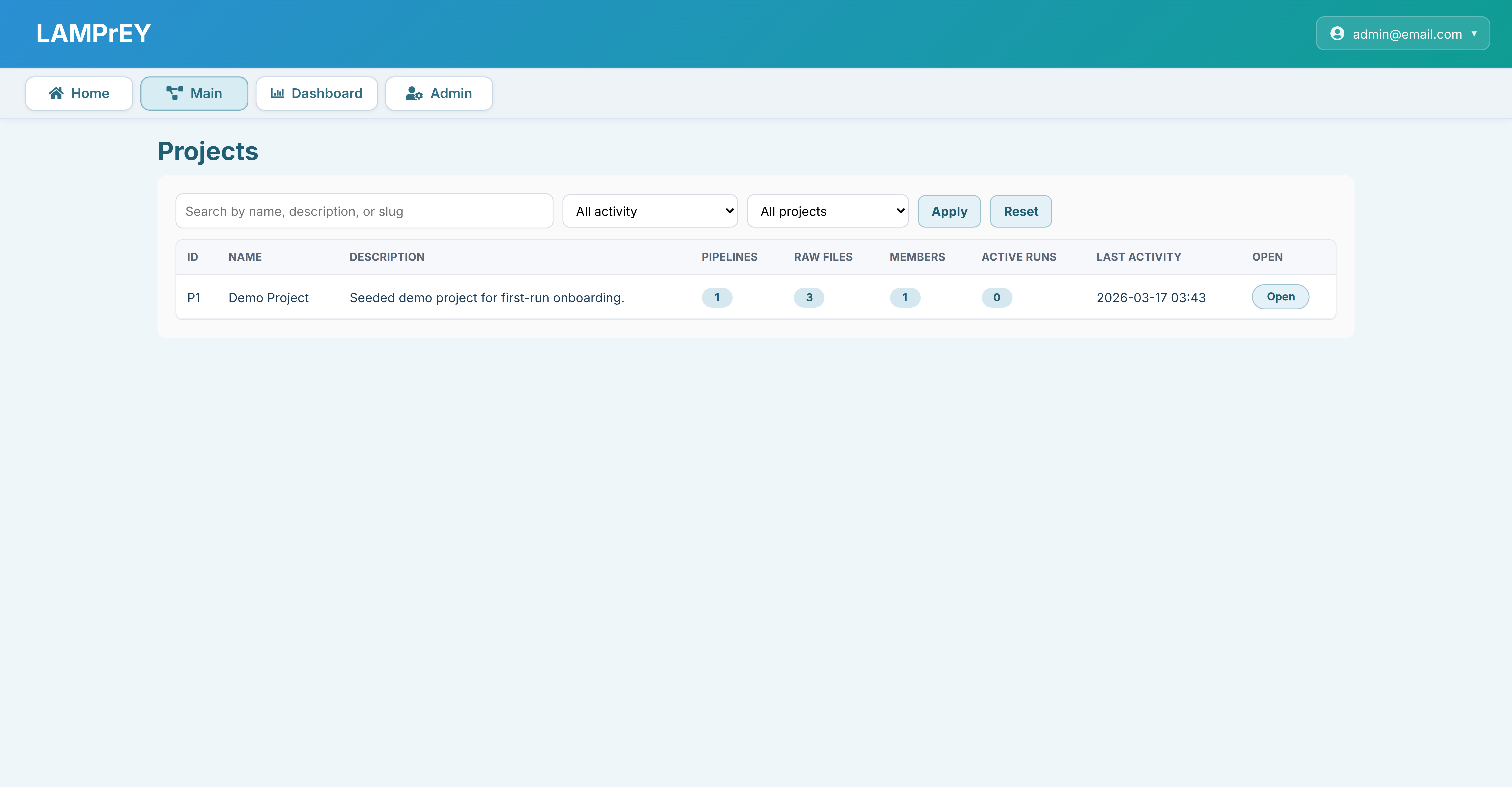 LAMPrEY ships with a seeded demo so a fresh installation is immediately usable after installation.