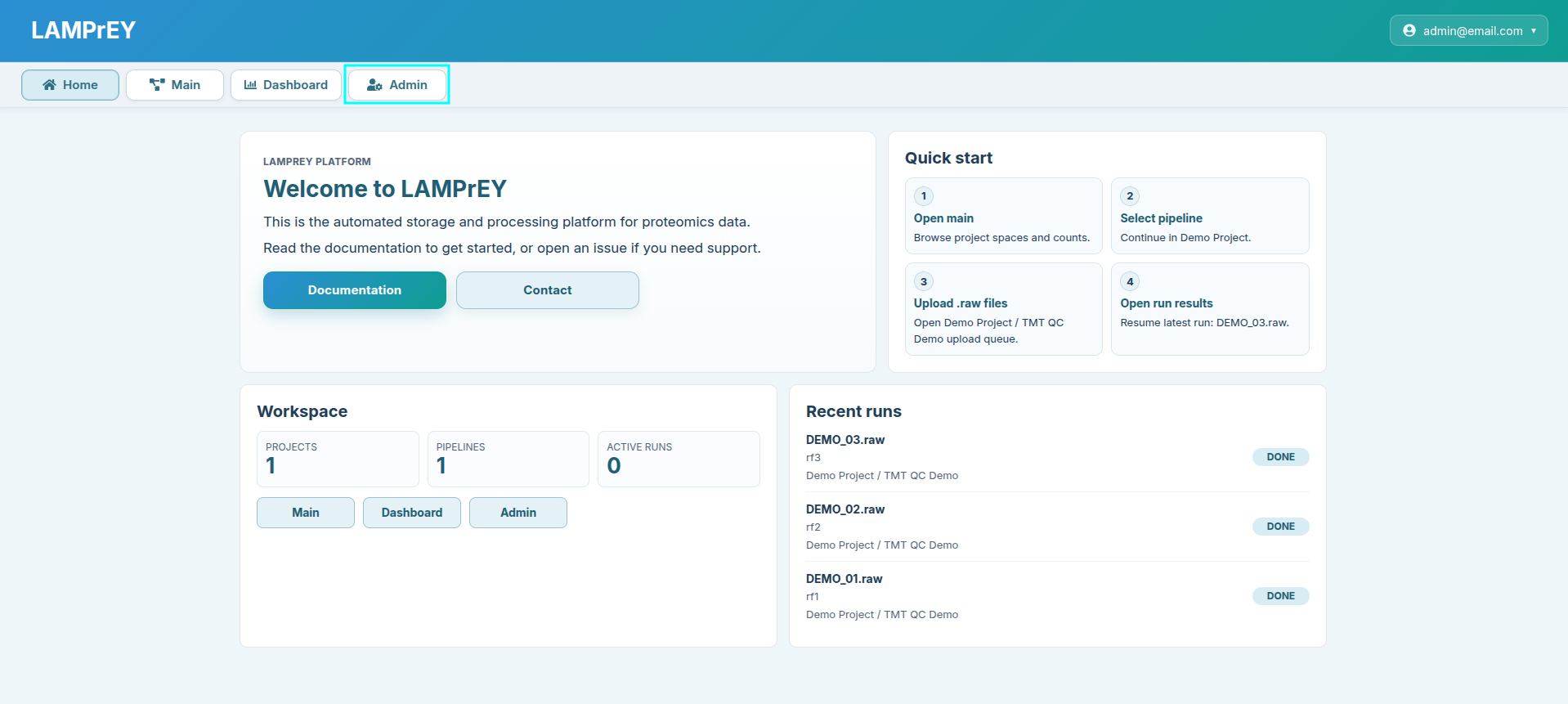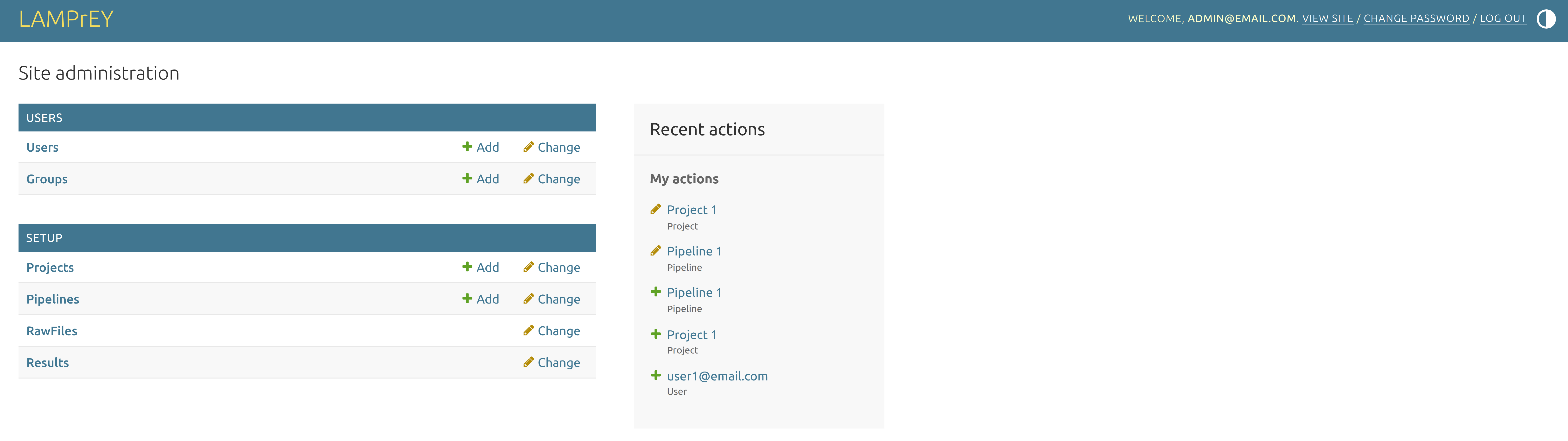 This is the admin panel where users, projects, pipelines, and related resources can be managed.