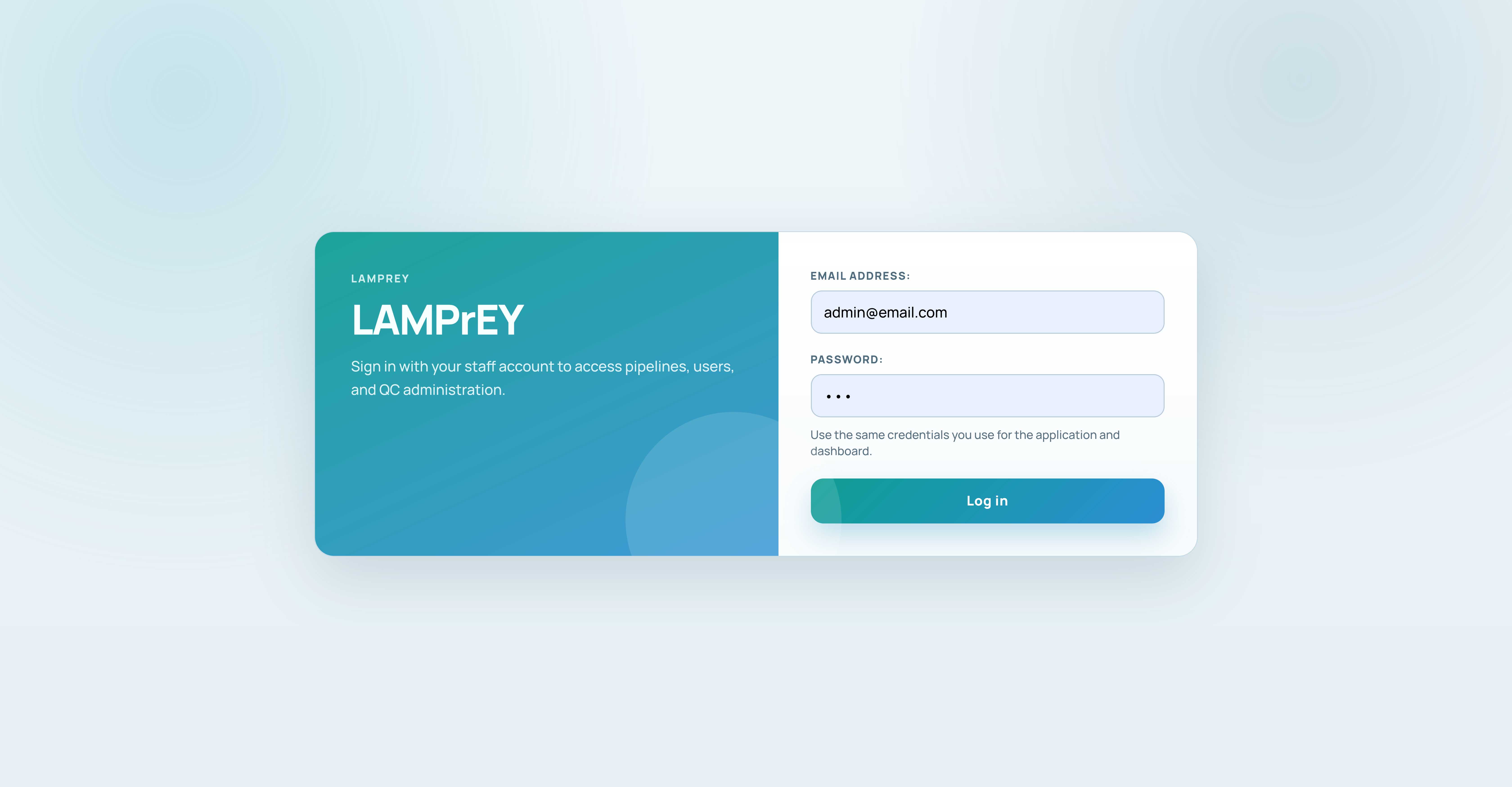 If you followed the steps in the installation you have already created an admin account and started the LAMPrEY server.