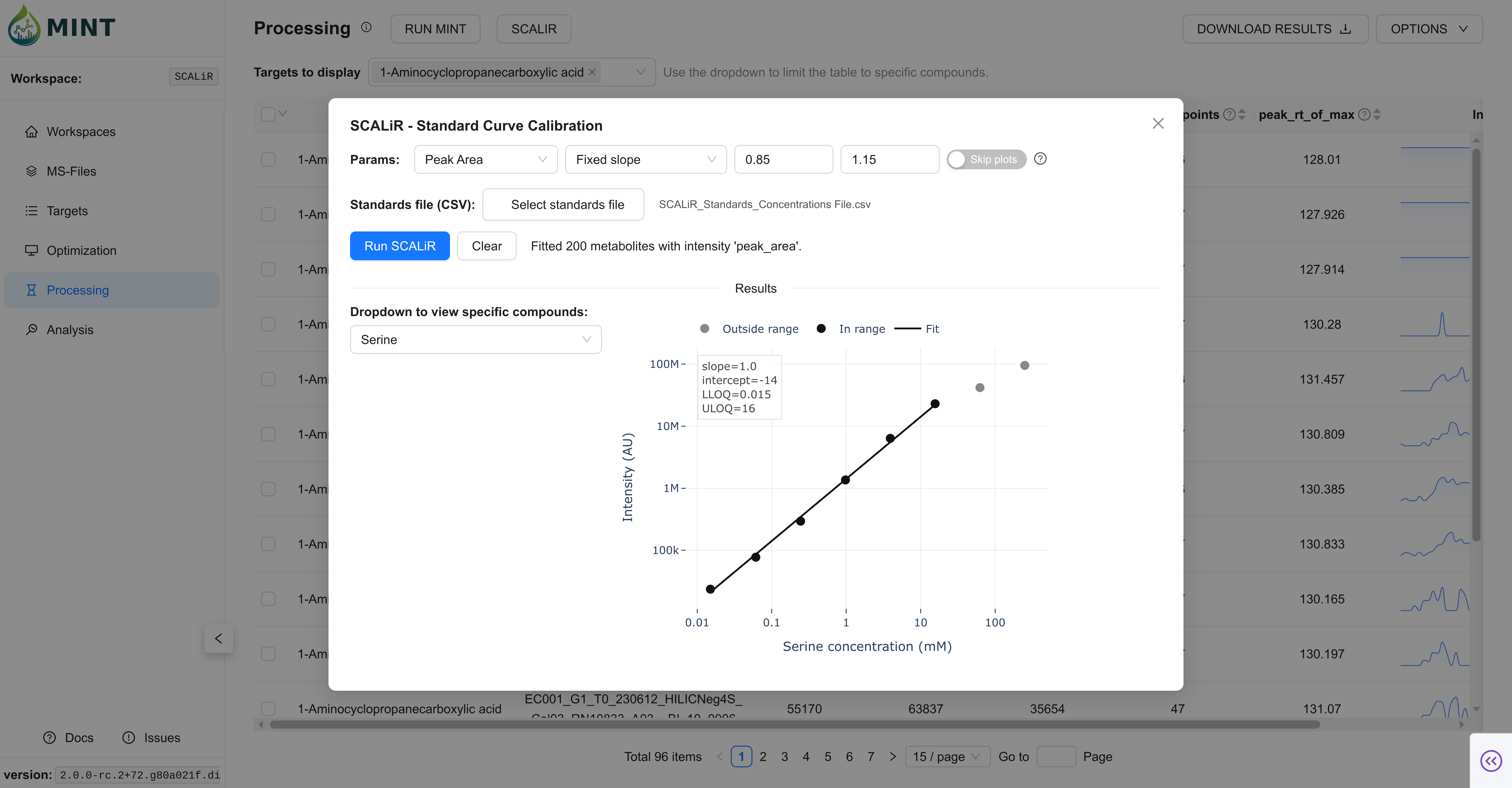 SCALiR is an optional absolute-quantification workflow layered on top of Processing results.